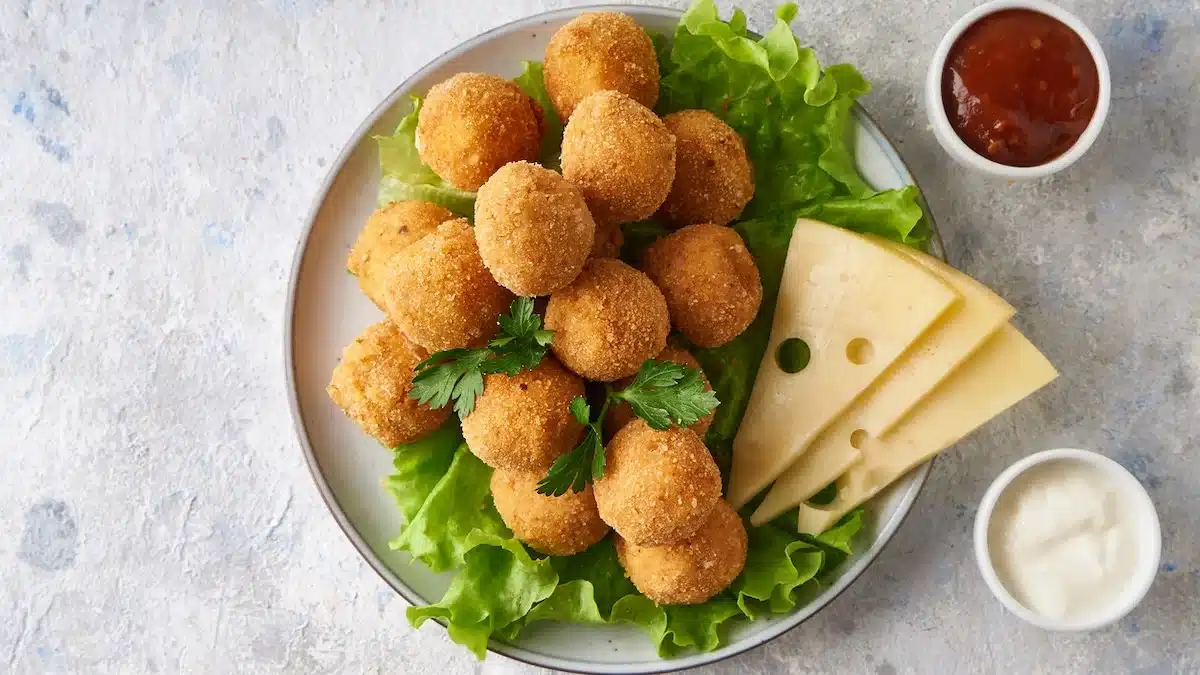 Roll each ball generously in breadcrumbs before frying. Standard breadcrumbs work fine, but panko — the Japanese-style breadcrumb available at most grocery stores — produces a noticeably crunchier, airier crust. The larger, flakier texture of panko doesn't absorb as much oil, which means a lighter bite and a more satisfying crunch with every mouthful.