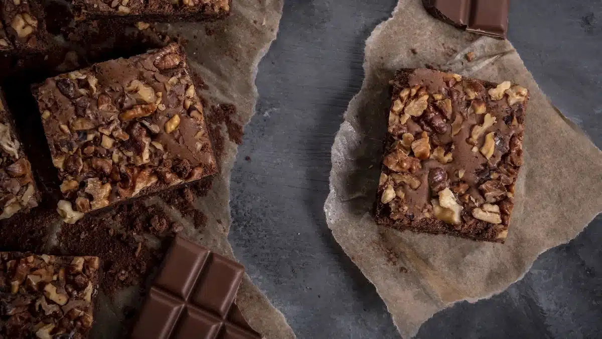 When swapping dark chocolate for milk chocolate, reduce the sugar by 20 to 30 g to avoid an overly sweet result. The brownie’s fudgy texture stays intact either way.